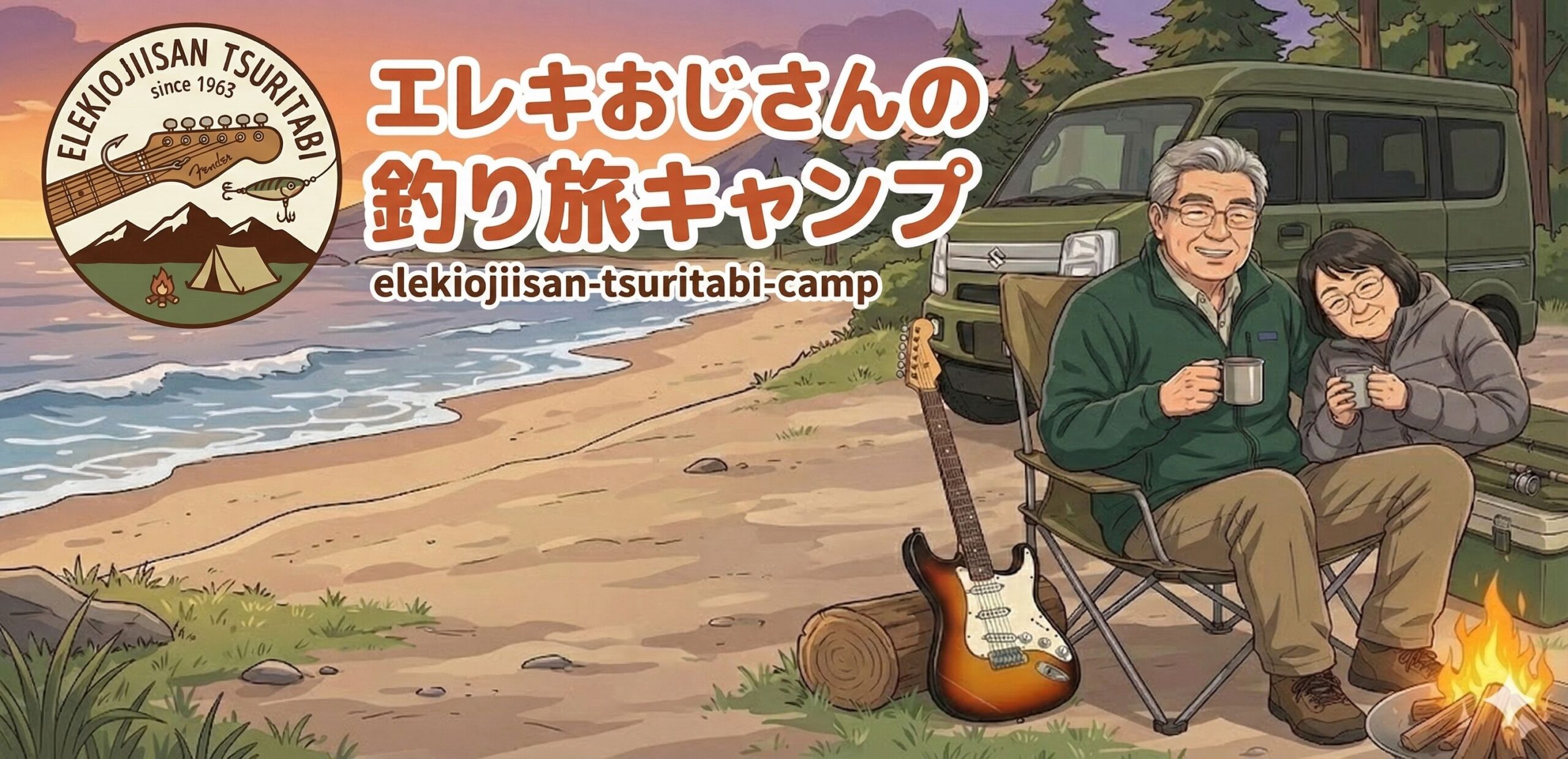 運営者の「エレキおじさん」こと、関東北部在住の62歳です。 定年を控え、現在は妻と二人三脚で**「キャンピングカーで日本各地を気ままに釣りしながら巡る」**という大きな夢を追いかけています。