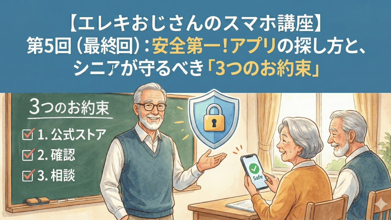 【スマホ講座⑤・最終回】安全第一のスマホ術!アプリの探し方とシニアが絶対に守るべき「3つのお約束」